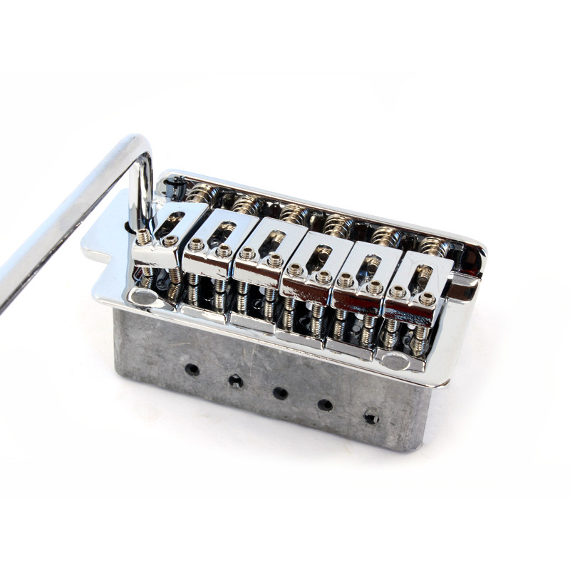 This chrome bridge assembly is for use on most Player, Deluxe, Classic Player, and Vintera Modified Series Stratocasters and combines modern two-point synchronized tremolo design with classic Fender® looks. Featuring “FENDER” stamped steel saddles, 2-1/16? string spacing and 2-7/32? post spacing.