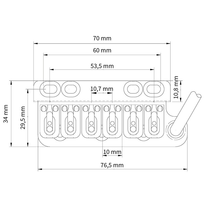 VIBRATO 6 VIS PONTETS ACIER ÉCARTEMENT DE CORDES 52.5mm BLOC 40mm CHROME / TREMOLO 6 SCREWS STEEL SADDLES - 52.5mm STRING SPACING - 40mm BLOCK CHROME