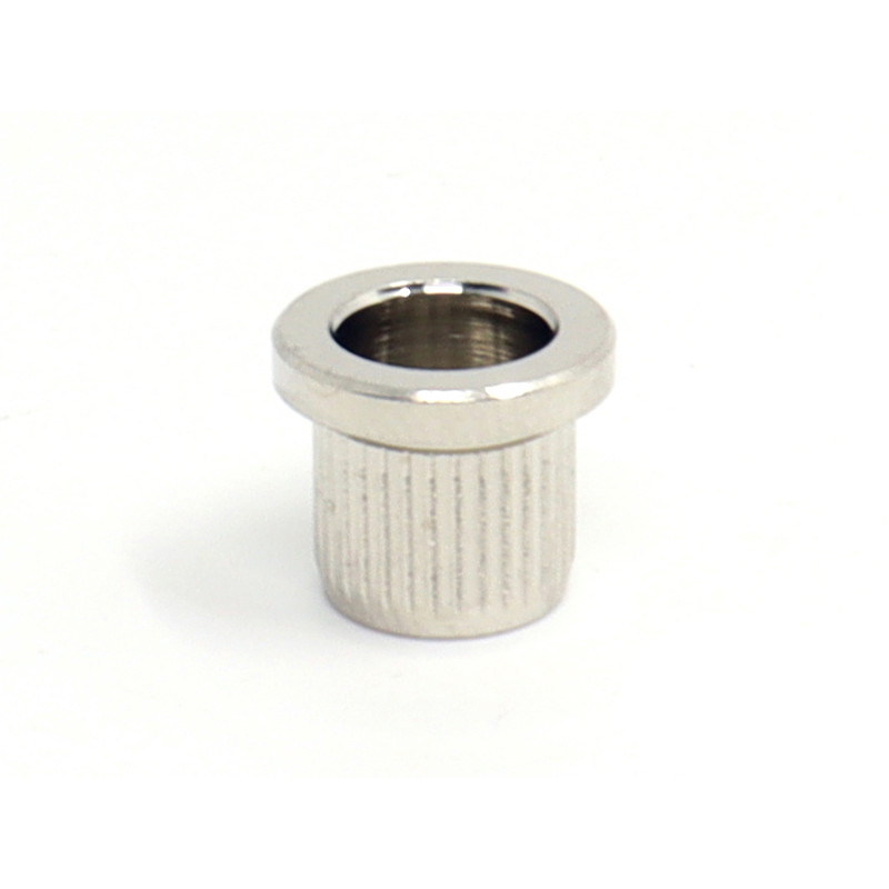 Genuine Fender® string ferrules. Made for Fender®. Package of four plated steel string ferrules used on most Fender® basses with strings-thru-body design. Diameter: .519" internal, .62" external. Approximately .55" tall. Fits American Deluxe, American Standard, and American Series (USA) strings-thru-body basses manufactured from 1998-Present.