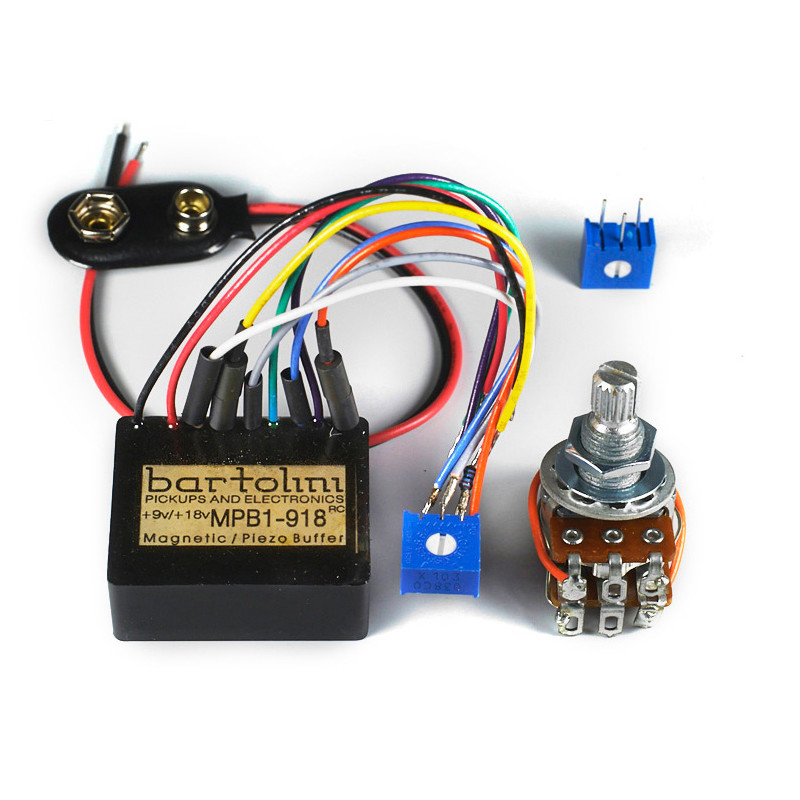 Buffer, Adjustable Gain, Dual Channel - 1 Magnetic, 1 Piezo with flat response, 9 or 18V with Active Blend Pot The MPB2-918 is a dual channel buffer preamp. One channel has a high impedance input for use with a piezo or microphonic transducer. The other channel provides isolation and boost for magnetic pickups and features adjustable gain allowing you to...