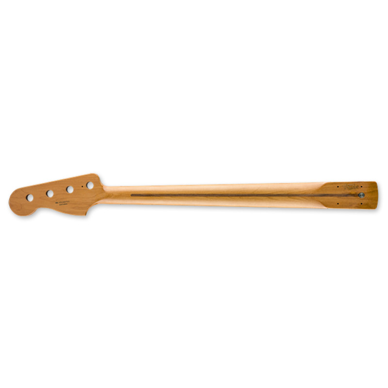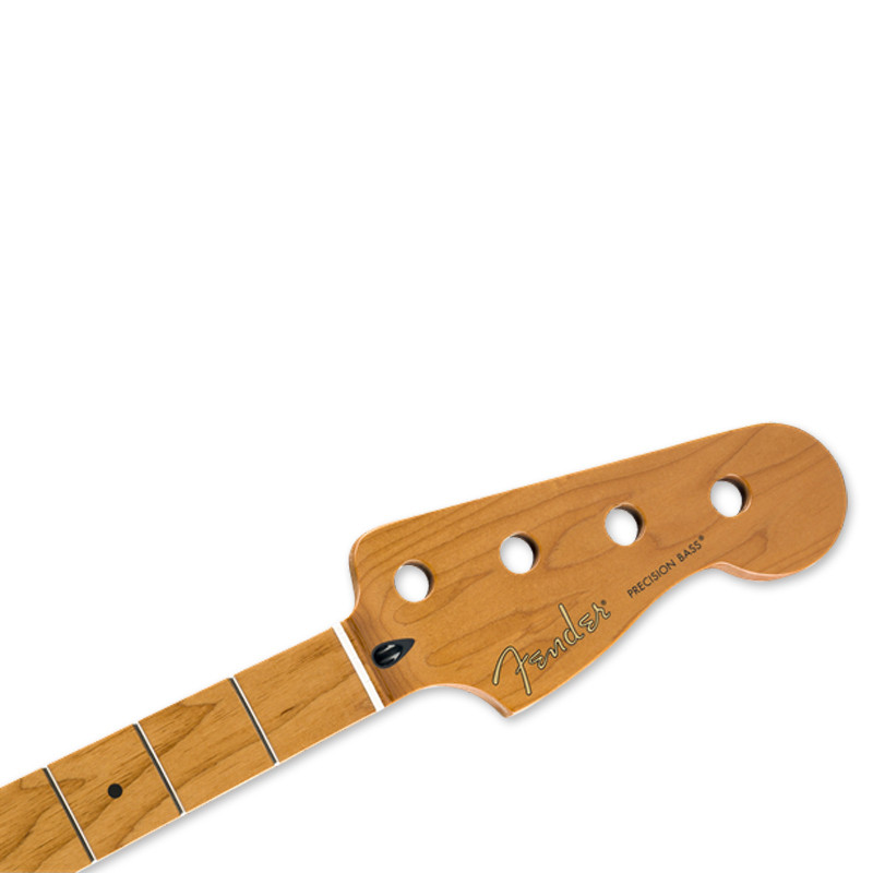 There’s no denying the allure of a roasted maple neck. Resistant to humidity shifts and featuring a gorgeous, dark look, they have more sustain and add a unique note to the instrument’s voice. This genuine Fender Precision Bass neck is crafted at our Ensenada, Mexico manufacturing facility. Featuring a comfortable "Modern C"-shaped profile and 9.5"-radius maple fingerboard with 20 medium-jumbo frets, this neck was designed for pure playability. The synthetic bone nut is pre-slotted with "pilot" grooves for accurate spacing when filing the final string slots. The perfect way to give your P Bass® authentic Fender feel, this replacement neck even sports our famous “spaghetti” logo on the headstock. This replacement neck is for a Fender or Squier® by Fender guitar. Because Fender genuine replacement necks have not been mounted to guitar bodies, nut slots must be cut by qualified personnel. Other installation processes may be required, such as fret work, fitting the neck to the neck pocket, and other instrument setup procedures. Your local FMIC Authorized Service Center can install genuine replacement necks; find Authorized Service Center locations near you in the “Support” section of fender.com. Couleur Natural