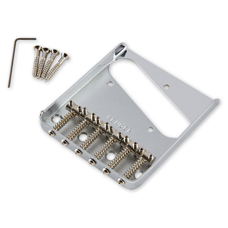 Made for Fender® instruments in a variety of vintage and contemporary models. Each bridge assembly includes mounting hardware and wrenches. Chrome-plated steel bridge with six fully adjustable nickel-plated barrel saddles for string-through-body Telecaster®. Mounting hardware included. Fits American Vintage Series (USA) and Deluxe Nashville (Mexico) guitars.