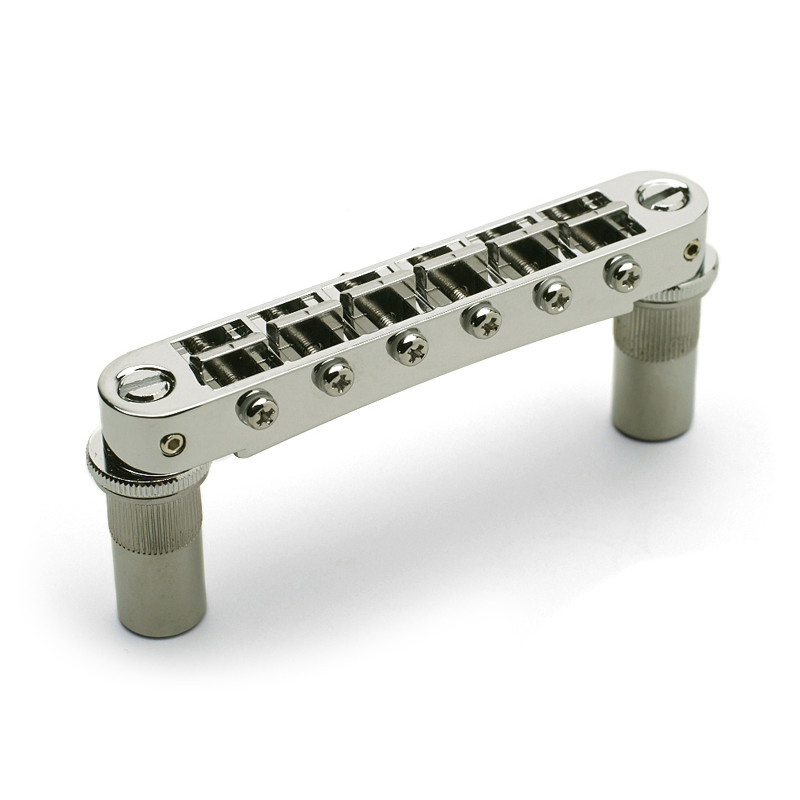 GOTOH® GE103B-T TUNE-O-MATIC BRIDGE 6mm METRIC POSTS NICKEL -Strings Spacing : 52mm (10.4 x 5) -Saddle Material : Hard Zinc -Posts Spacing : 74mm -Posts Thread : M8 -Radius : R300