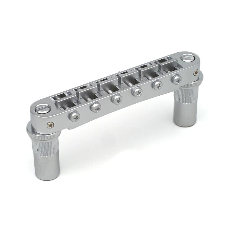 GOTOH® GE103B-T TUNE-O-MATIC BRIDGE 6mm METRIC POSTS NICKEL -Strings Spacing : 52mm (10.4 x 5) -Saddle Material : Hard Zinc -Posts Spacing : 74mm -Posts Thread : M8 -Radius : R300