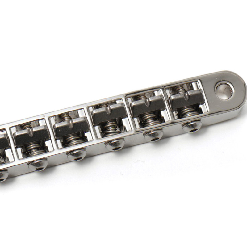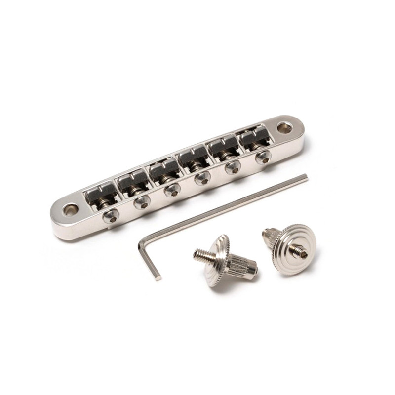 GOTOH® GE103B-T TUNE-O-MATIC BRIDGE 6mm METRIC POSTS NICKEL -Strings Spacing : 52mm (10.4 x 5) -Saddle Material : Hard Zinc -Posts Spacing : 74mm -Posts Thread : M8 -Radius : R300