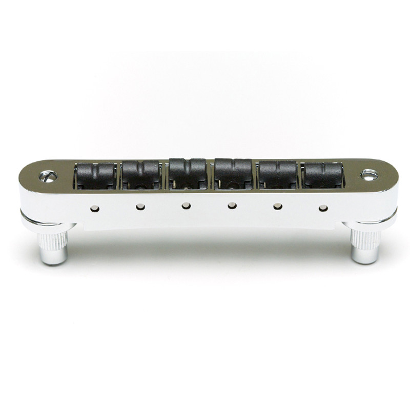 GOTOH® GE103B-T TUNE-O-MATIC BRIDGE 6mm METRIC POSTS NICKEL -Strings Spacing : 52mm (10.4 x 5) -Saddle Material : Hard Zinc -Posts Spacing : 74mm -Posts Thread : M8 -Radius : R300