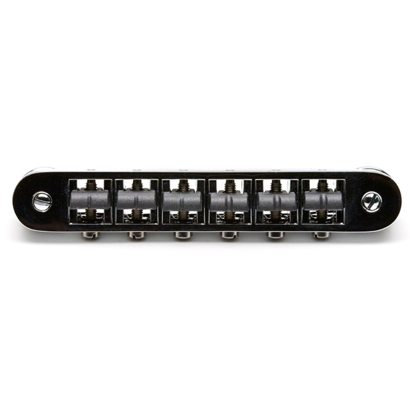 The TonePros AVR2 is the exact replacement for the bridges found on older or vintage instruments originally fitted with ABR-1 style bridges. This locking model has the complete appearance of the vintage part, but has many upgrades including more intonation range and saddles that are “engineered in” solid, preventing “lift” against the retainer wire....