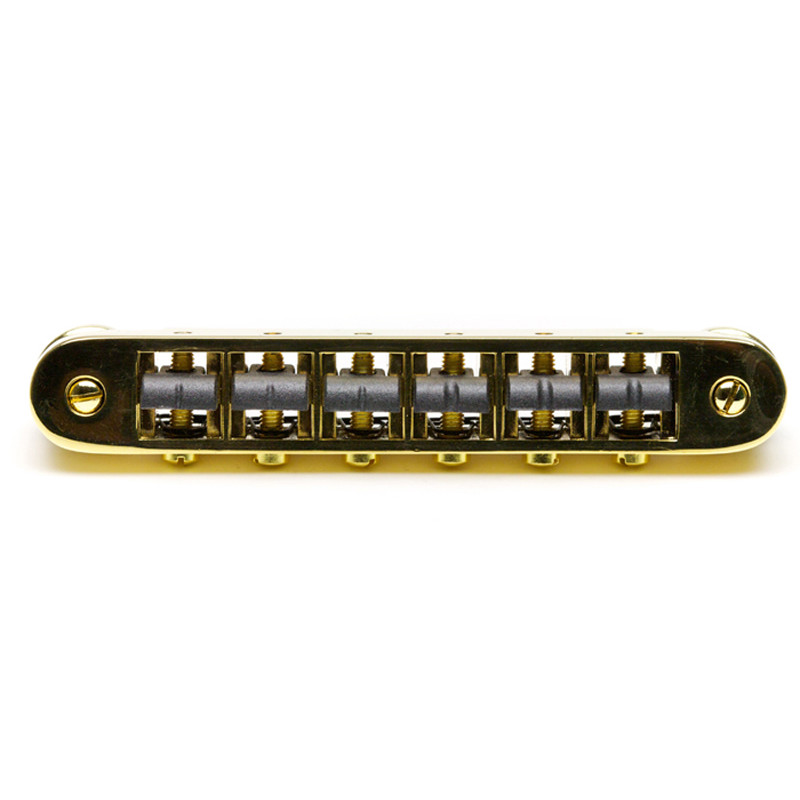 GOTOH® GE103B-T TUNE-O-MATIC BRIDGE 6mm METRIC POSTS COSMO GOLD -Strings Spacing : 52mm (10.4 x 5) -Saddle Material : Hard Zinc -Posts Spacing : 74mm -Posts Thread : M8 -Radius : R300