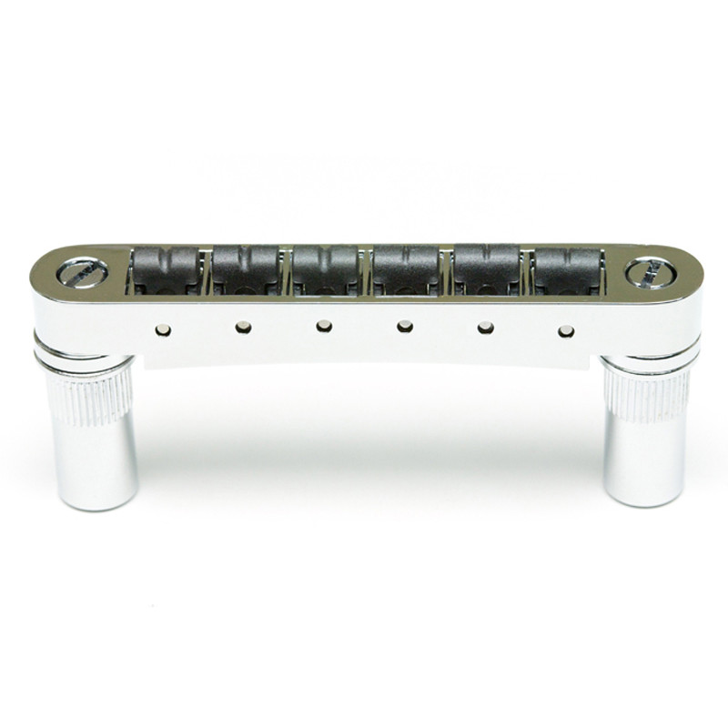 GOTOH® GE103B-T TUNE-O-MATIC BRIDGE 6mm METRIC POSTS NICKEL -Strings Spacing : 52mm (10.4 x 5) -Saddle Material : Hard Zinc -Posts Spacing : 74mm -Posts Thread : M8 -Radius : R300