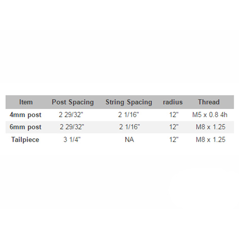 GOTOH® GE103B TUNE-O-MATIC BRIDGE 4mm METRIC BLACK -Strings Spacing : 52mm (10.4 x 5) -Saddle Material : Hard Zinc -Posts Spacing : 74mm -Posts Thread : M4 -Radius : R300