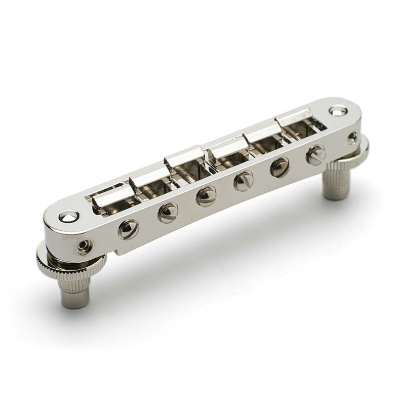 GOTOH® GE103B-T TUNE-O-MATIC BRIDGE 6mm METRIC POSTS NICKEL -Strings Spacing : 52mm (10.4 x 5) -Saddle Material : Hard Zinc -Posts Spacing : 74mm -Posts Thread : M8 -Radius : R300