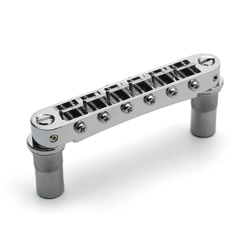 GOTOH® GE103B-T TUNE-O-MATIC BRIDGE 6mm METRIC POSTS NICKEL -Strings Spacing : 52mm (10.4 x 5) -Saddle Material : Hard Zinc -Posts Spacing : 74mm -Posts Thread : M8 -Radius : R300