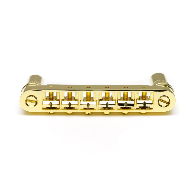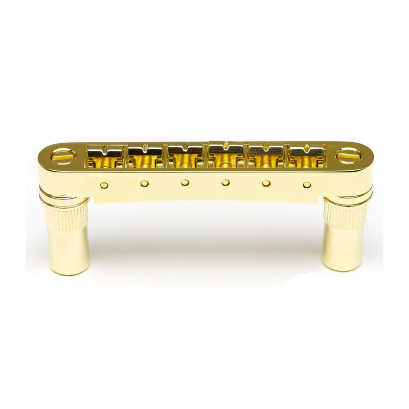 GOTOH® GE103B-T TUNE-O-MATIC BRIDGE 6mm METRIC POSTS COSMO GOLD -Strings Spacing : 52mm (10.4 x 5) -Saddle Material : Hard Zinc -Posts Spacing : 74mm -Posts Thread : M8 -Radius : R300