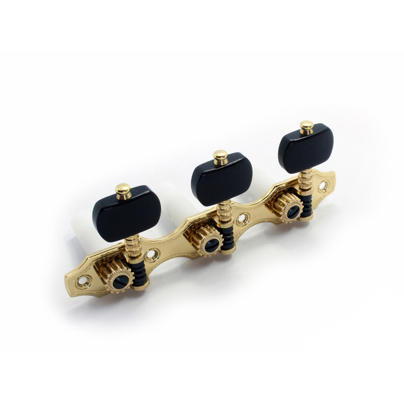 GOTOH® 35G510 SERIES MACHINE HEADS FOR CLASSICAL GUITAR BLACK BUTTONS BLACK ALUMINIUM ROLLER POSTS (1:16) GOLD -Set : 2pcs -String Post : 35ARB -Gear Ratio : 1 : 16 -Weight : 79.2 g/1pc (One side) -Plate Material : Brass