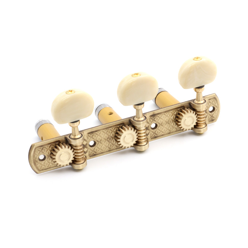 DER JUNG® MÉCANIQUES POUR GUITARE CLASSIQUE BOUTONS ET AXES IVOIRE GOLD -Ratio : 1:18 -Axe : S2 Classique Ivoire -Entre Axes : 35mm