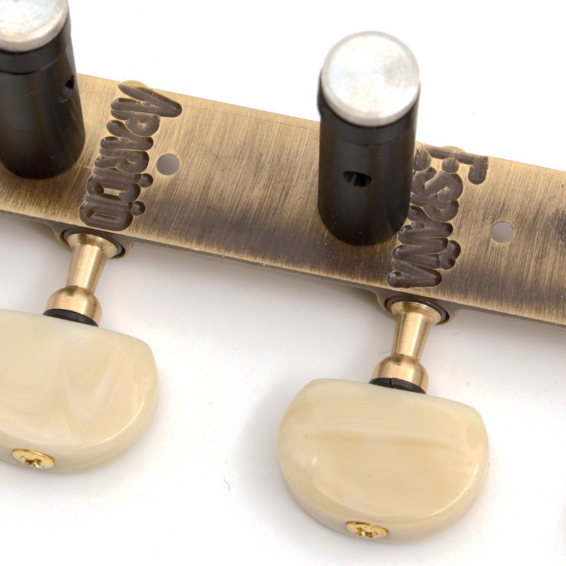DER JUNG® MÉCANIQUES POUR GUITARE CLASSIQUE BOUTONS ET AXES IVOIRE GOLD -Ratio : 1:18 -Axe : S2 Classique Ivoire -Entre Axes : 35mm