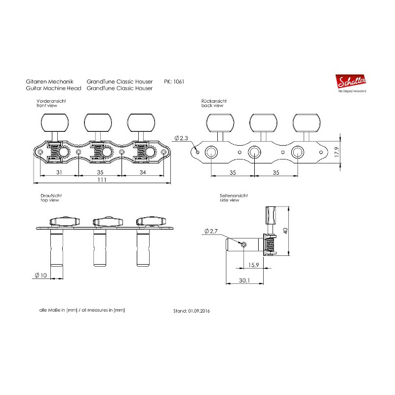 SCHALLER GRAND TUNE CLASSIC HAUSER GOLD BEARINGS / EBONY SQUARE