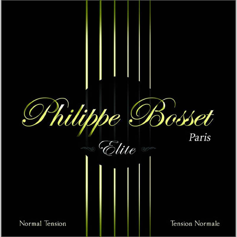 PHILIPPE BOSSET PRESTIGE TENSION NORMALE 7 CORDES CLASSIQUE NYLON CLAIR Cordes aiguës :Nylon clair tension forte Cordes basses: Nylon multi-filament cuivre plaqué argent Vernis anti-sulfureux .028 .032 .040 .029w .036w .044w .052w
