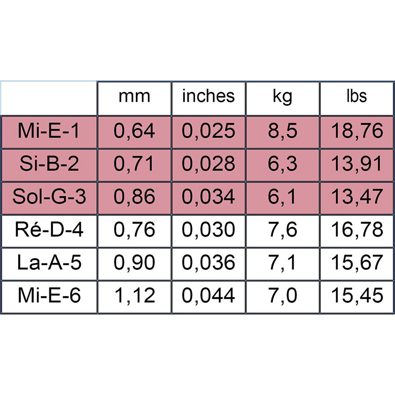 Véritables avancées technologiques, les jeux ALLIANCE CORUM et ALLIANCE HT CLASSIC inaugurent une ère nouvelle dans la guitare classique. Ils permettent d’explorer de nouvelles possibilités d’expressions et de sons. Brillance, projection, nuances, homogénéité des qualités sonores sur toute l’étendue de l’instrument. Un équilibre parfait. Les aigües : Mi.1...