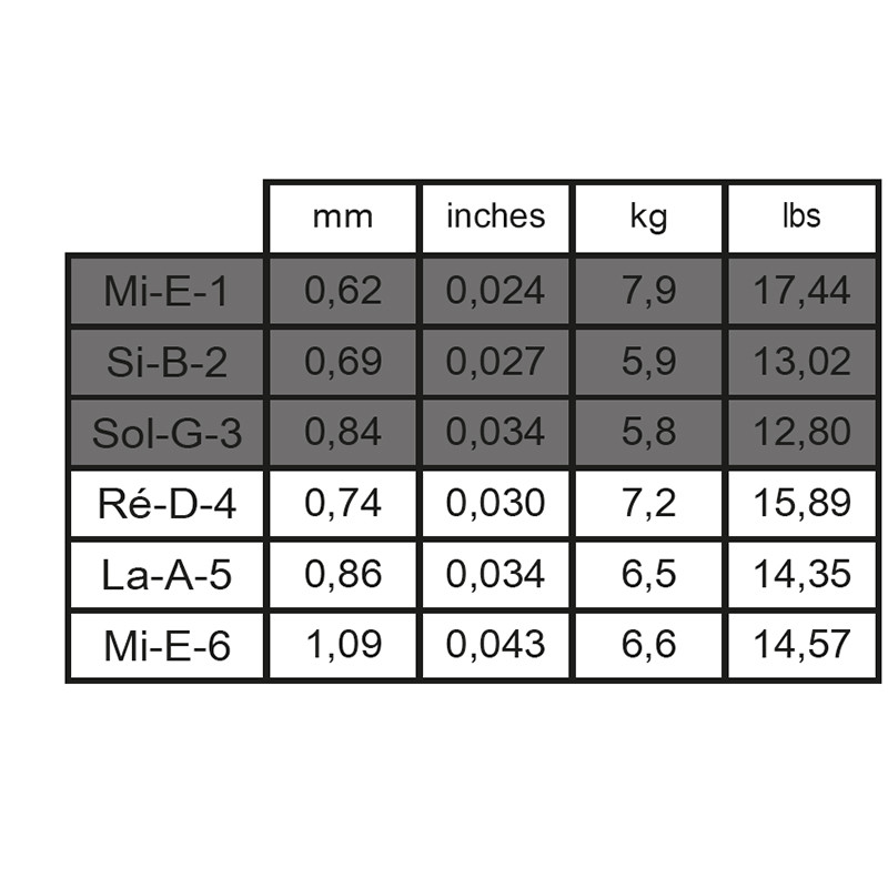 Véritables avancées technologiques, les jeux ALLIANCE CORUM et ALLIANCE HT CLASSIC inaugurent une ère nouvelle dans la guitare classique. Ils permettent d’explorer de nouvelles possibilités d’expressions et de sons. Brillance, projection, nuances, homogénéité des qualités sonores sur toute l’étendue de l’instrument. Un équilibre parfait. Les aigües : Mi.1...