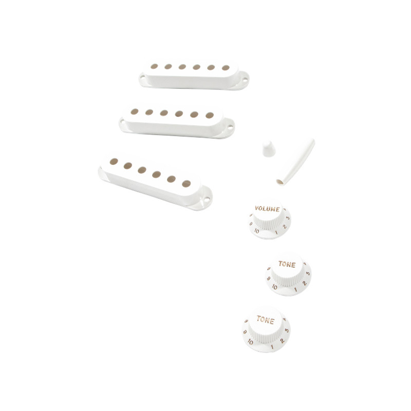 Want to change the look of your Stratocaster® without spending a lot of money on a paint job? Try sprucing it up with a Stratocaster Accessory Kit. Everything you need to personalize your Stratocaster. Includes volume and tone knobs, tremolo arm tip, switch tip, tremolo backplate and pickup covers. Pickup covers will not fit SCN™, N3™, or Noiseless™...