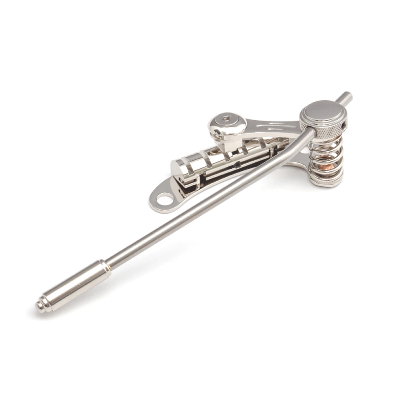 Licensed by Duesenberg - Mounted in place of a stop tailpiece. No drilling, no routing, simply screw into the two existing threaded bushings with the enclosed bolts. With a classic flat arm in Göldo design! Incl. metric and US screws. Important: The distance between the tailpiece bolts must be exactly 81.5 mm (measured from centre to centre). Otherwise...