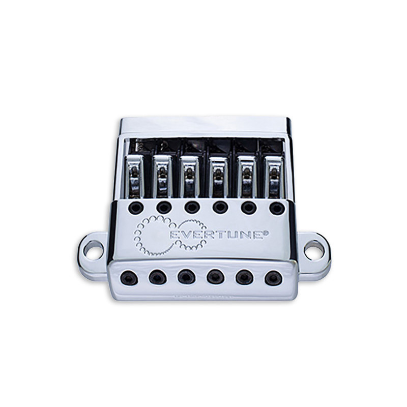 EVERTUNE BRIDGE F MODEL 6 STRINGS CHROME For Strat-style guitars. Ambidextrous. Every new EverTune bridge comes with a service pack. This includes an EverTune hex key (matched to the faceplate color), an extra set of action screws and a printed Owners Manual. If the installed set of action screws is 8mm then the service pack will have 10mm screws; if the...
