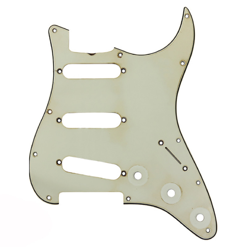 Aged ''57 plastic pickguard, 8 mounting holes, squared edge cut.