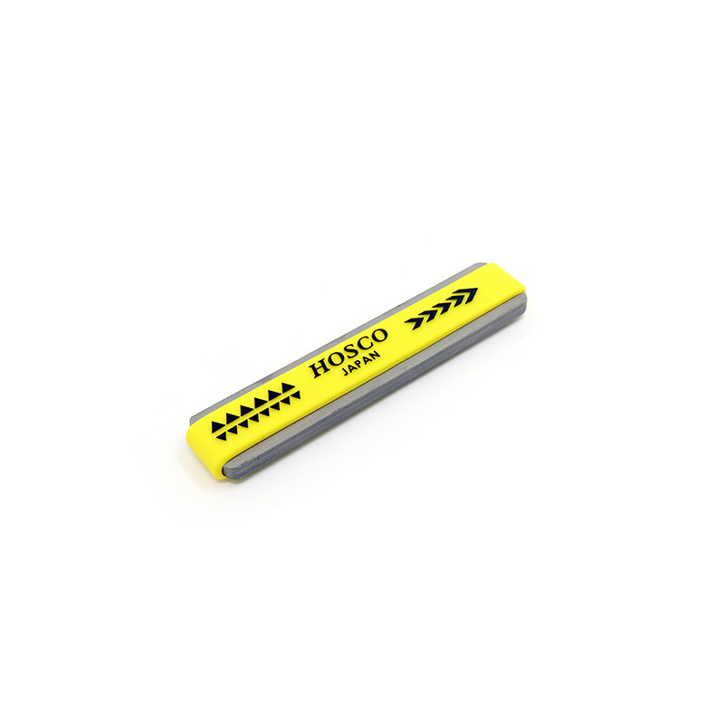 HOSCO® COMPACT FRET CROWN FILE WITH COARSE AND FINE CUTS FOR SMALL FRETS (1mm) -File size : 100 x 20 x 4mm (without silicone rubber grip) -Embossed triangle marks shows coarse-cut and fine-cut sides -Blue silicon rubber grip