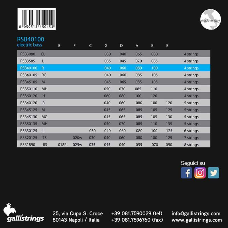 GALLI STRINGS® BASS ROCKSTAR MEDIUM NICKEL ROUND WOUND .045-.105 The GalliStrings® RSB is manufactured with the purest materials using the highest technologies.For a perfect durable bass tone. .045- .065 - .085 - .105