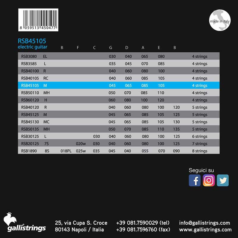 GALLI STRINGS® BASS ROCKSTAR MEDIUM CUSTOM NICKEL ROUND WOUND 5 STRINGS .045-.130 The GalliStrings® RSB is manufactured with the purest materials using the highest technologies.For a perfect durable bass tone. .045 - .065 - .085 - .105 - .130