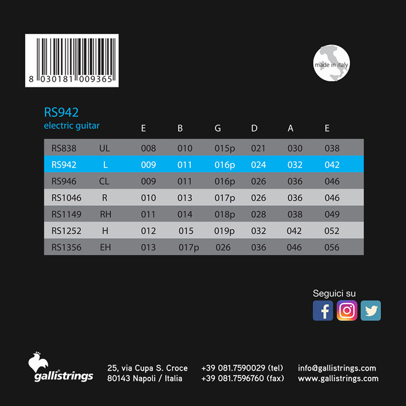 GALLI STRINGS® RS ELECTRIC BULK 009-046 (12 SETS MINIMUM) 009 - 013 - 017 - 026 - 036 - 046