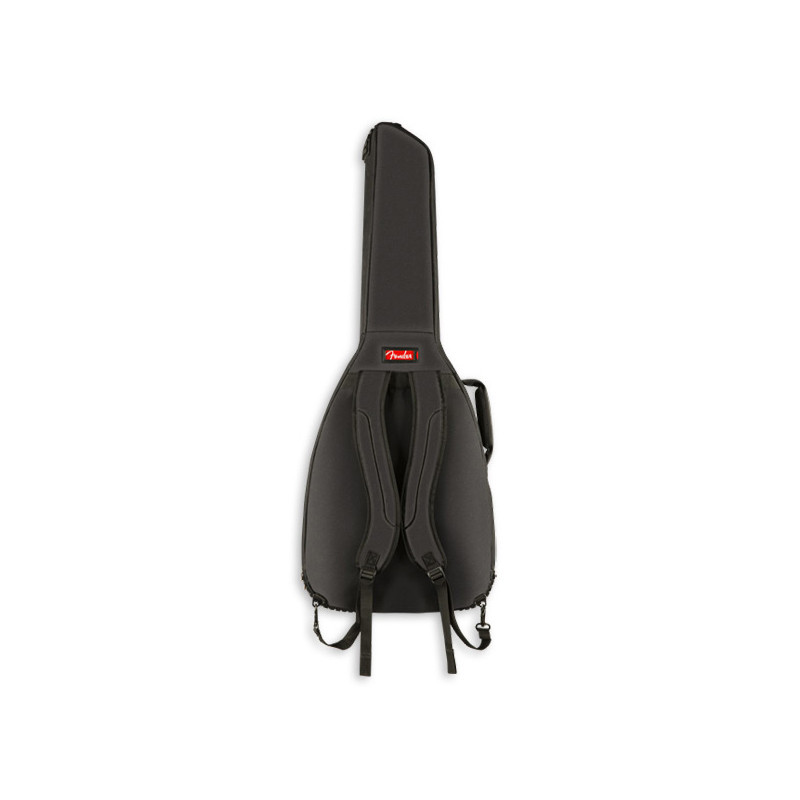 Fender's F610 Series gig bag is a stylish and affordable way to keep your dreadnought acoustic guitar safe while traveling. Featuring our iconic asymmetrical Fender shape, its durable outer layer is constructed of tough 600 Denier polyester that protects against impacts while avoiding ripping and tearing. Its interior is filled with 10mm padding and lined with soft touch microfiber that keeps your instrument secure while preventing potential finish damage.The F610 gig bag also comes with a comfortable two-piece handle and ergonomic air mesh backpack straps with easily adjustable ladder lock buckles, so you can comfortably carry your instrument without unnecessary physical strain. Plus, the front storage pocket offers additional storage space for small accessories and a business card window.