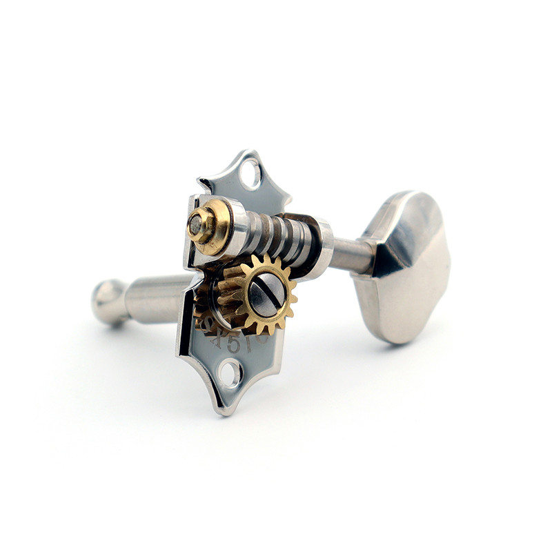 The original Roundbacks from Kluson! "Roundbacks" are closed type, maintenance-free tuners for modern 10mm pegholes. The special 18:1 gear-ratio allows for extremely smooth and precise tuning. Lowest tolerances and best manufacturing technology make the Kluson "Roundbacks" the perfect standard for modern tuning machines. for 3+3 headstocks Kidney Buttons...
