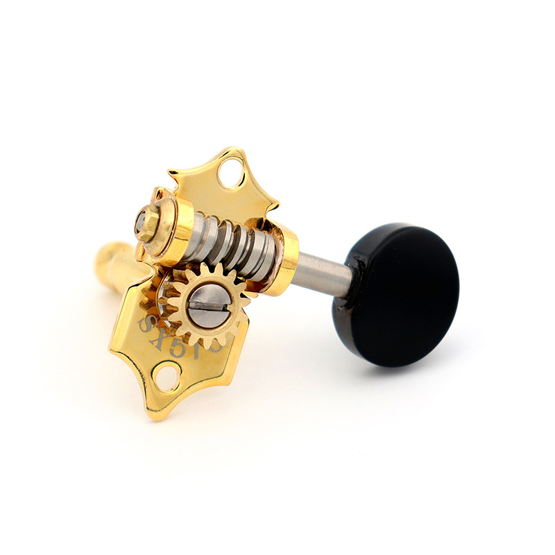 The original Roundbacks from Kluson! "Roundbacks" are closed type, maintenance-free tuners for modern 10mm pegholes. The special 18:1 gear-ratio allows for extremely smooth and precise tuning. Lowest tolerances and best manufacturing technology make the Kluson "Roundbacks" the perfect standard for modern tuning machines. for 3+3 headstocks Kidney Buttons...