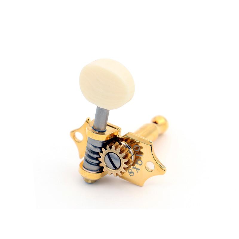 The original Roundbacks from Kluson! "Roundbacks" are closed type, maintenance-free tuners for modern 10mm pegholes. The special 18:1 gear-ratio allows for extremely smooth and precise tuning. Lowest tolerances and best manufacturing technology make the Kluson "Roundbacks" the perfect standard for modern tuning machines. for 3+3 headstocks Kidney Buttons...