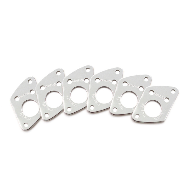 The PRT-952-214 is a set of 6 Ratio InvisoMatch Standard Installation Plates, designed for easy installation of Ratio Tuned Machine Heads. Match the correct plates to the current machine head screw position on your guitar. Use your guitars existing mounting screw holes for a fast, perfect Ratio Installation. It has a 45 degree screw hole mount.