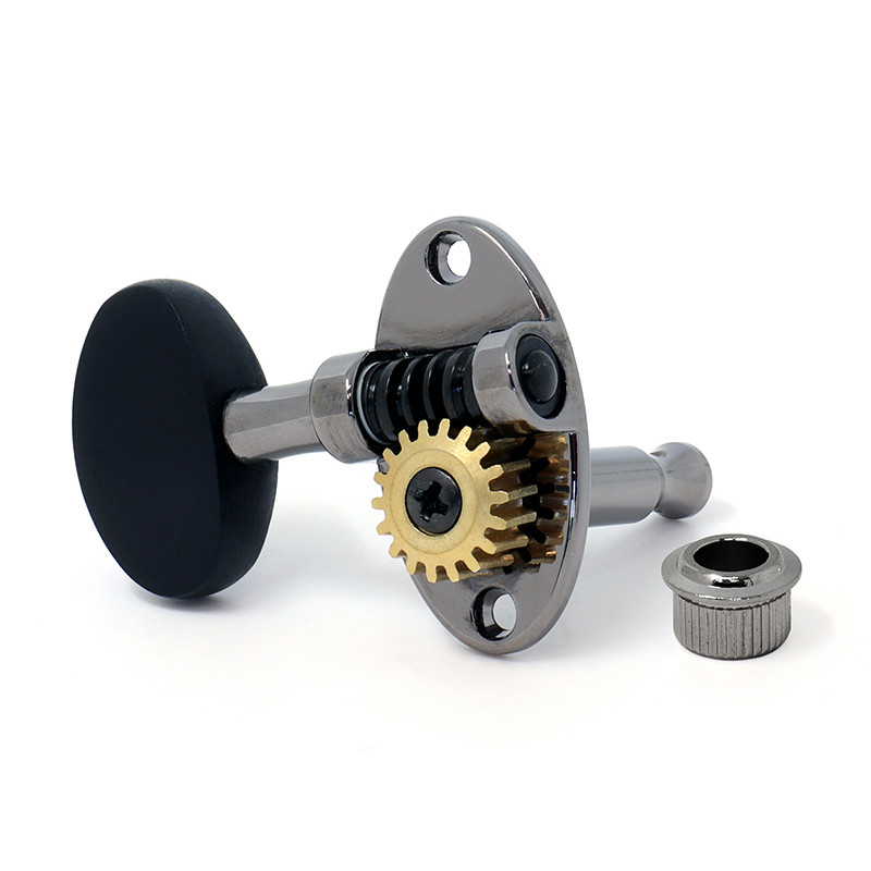 The original Roundbacks from Kluson! "Roundbacks" are closed type, maintenance-free tuners for modern 10mm pegholes. The special 18:1 gear-ratio allows for extremely smooth and precise tuning. Lowest tolerances and best manufacturing technology make the Kluson "Roundbacks" the perfect standard for modern tuning machines. for 3+3 headstocks Kidney Buttons...
