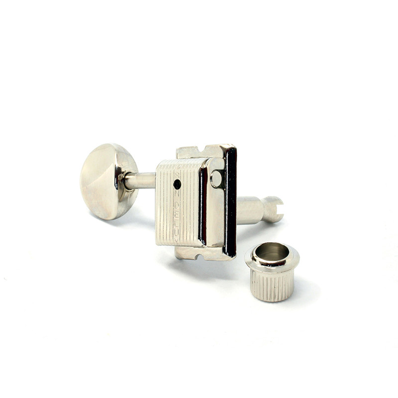 The original Roundbacks from Kluson! "Roundbacks" are closed type, maintenance-free tuners for modern 10mm pegholes. The special 18:1 gear-ratio allows for extremely smooth and precise tuning. Lowest tolerances and best manufacturing technology make the Kluson "Roundbacks" the perfect standard for modern tuning machines. for 6-left headstocks Oval Buttons...