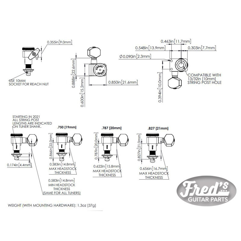 The original Roundbacks from Kluson! "Roundbacks" are closed type, maintenance-free tuners for modern 10mm pegholes. The special 18:1 gear-ratio allows for extremely smooth and precise tuning. Lowest tolerances and best manufacturing technology make the Kluson "Roundbacks" the perfect standard for modern tuning machines. for 6-left headstocks Oval Buttons...