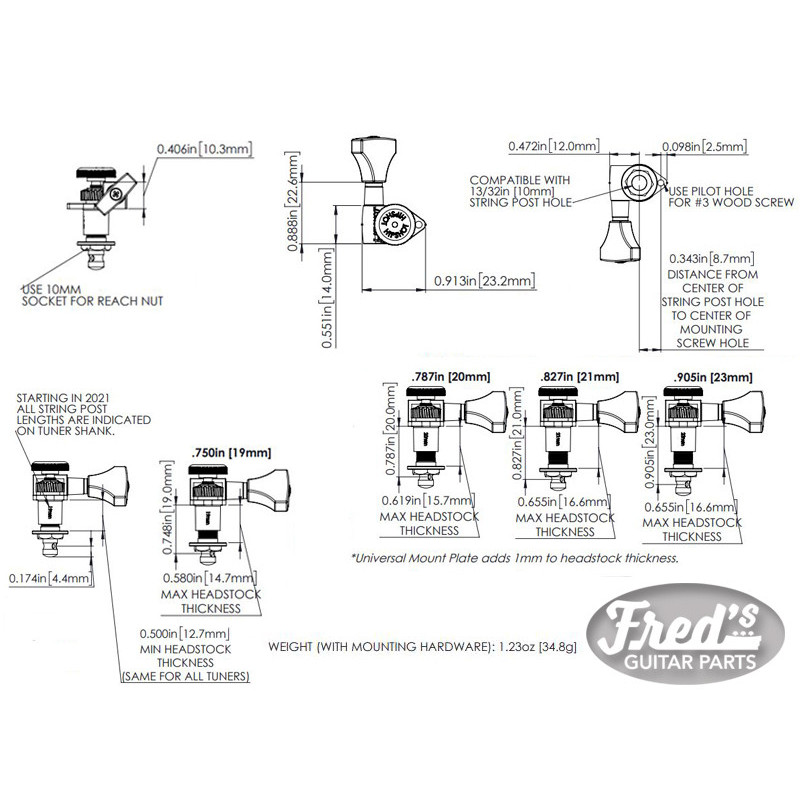 The original Roundbacks from Kluson! "Roundbacks" are closed type, maintenance-free tuners for modern 10mm pegholes. The special 18:1 gear-ratio allows for extremely smooth and precise tuning. Lowest tolerances and best manufacturing technology make the Kluson "Roundbacks" the perfect standard for modern tuning machines. for 6-left headstocks Oval Buttons...