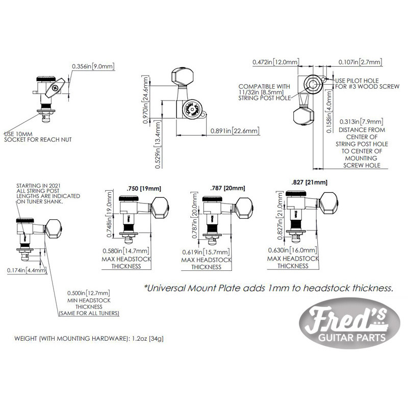 The original Roundbacks from Kluson! "Roundbacks" are closed type, maintenance-free tuners for modern 10mm pegholes. The special 18:1 gear-ratio allows for extremely smooth and precise tuning. Lowest tolerances and best manufacturing technology make the Kluson "Roundbacks" the perfect standard for modern tuning machines. for 6-left headstocks Oval Buttons...
