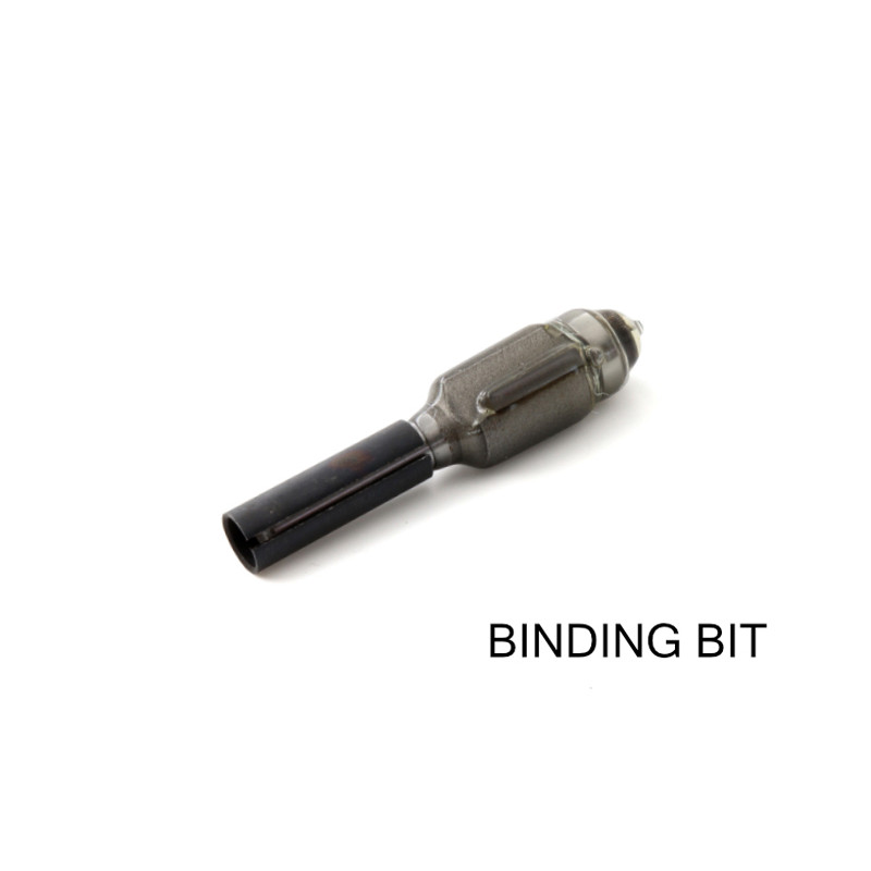 These high quality carbide bits are designed for luthier applications. Available for binding, template cuts, and control cavities. This is a high quality carbide bit designed to cut a 1/16 in. binding channel on the tops and backs of guitars. Bit diameter = 0.55in (14mm ) Bit shaft diameter = 1/4 in. Length of bit excluding shaft = 1.10 in. (28mm)