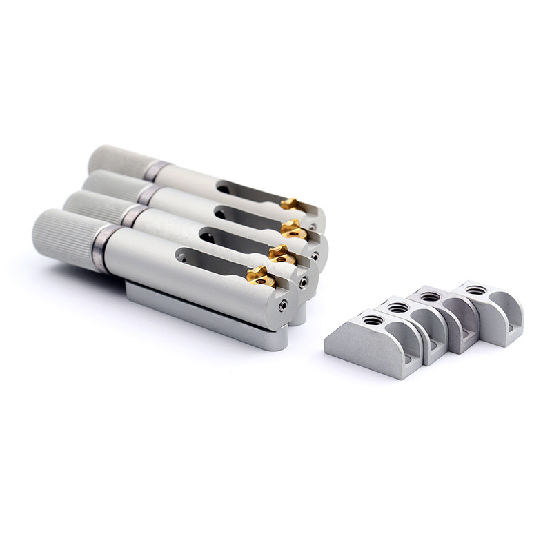 TAN BRIDGES HEADLESS GUITAR SINGLE SADDLE AND HEADPIECE SANDBLASTED GOLD Tan Bridges are made of titanium, aerospace grade aluminum and solid brass. It’s designed and produced for smooth operation, stable tuning and durability. Conventional headless bridges -which are available in the market- have friction problems due to string tension, string breaking...