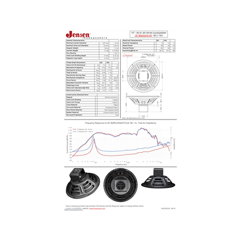 10" JENSEN JET "FALCON" 8 OHMS 40W