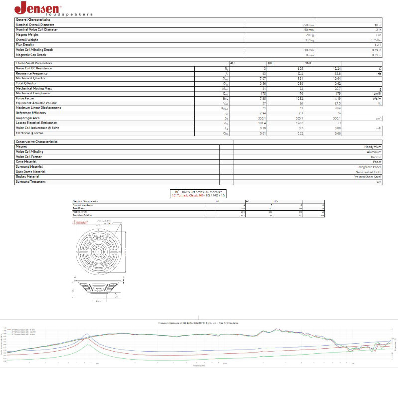 10" JENSEN JET "FALCON" 8 OHMS 40W