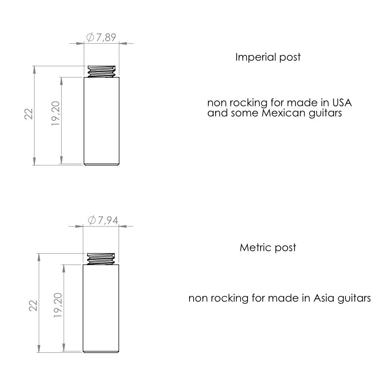 Made for Fender® instruments in a variety of vintage and contemporary models. Chrome-plated bridge assembly includes six vintage-style single-grooved barrel saddles, six intonation screws and springs, and two mounting posts with adjustable allen screws. Does not include "thimble" posts that fit into guitar body. Bridge posts are approximately 2-7/8" apart...