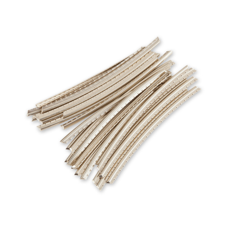 Fender® jumbo guitar fret wire is pre-cut in 24-piece quantities pre-radiused to 12". Measurements: .055" tall, .090" wide. Each piece is cut for guitar fingerboards. Dimensions 0.75x5.00x6.00 IN Poids 0.12 LB