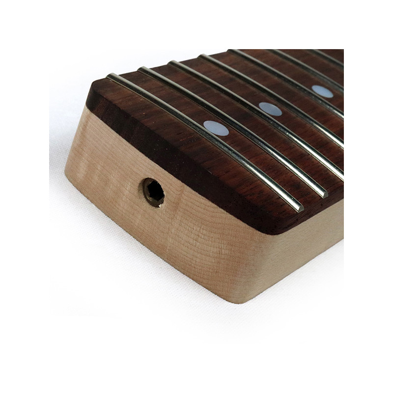 -21 tall frets (.073” x .060”) -Classic C-shape -Rosewood fingerboard -Unfinished one-piece maple neck with Rosewood fingerboard. -9.5" radius -Classic 1-5/8" nut width -Heel width 2-3/16" -Tuning Peg Hole Diameter .340" -Headstock truss rod adjustment -Neck thickness .85" at first fret, .95"at twelfth fret