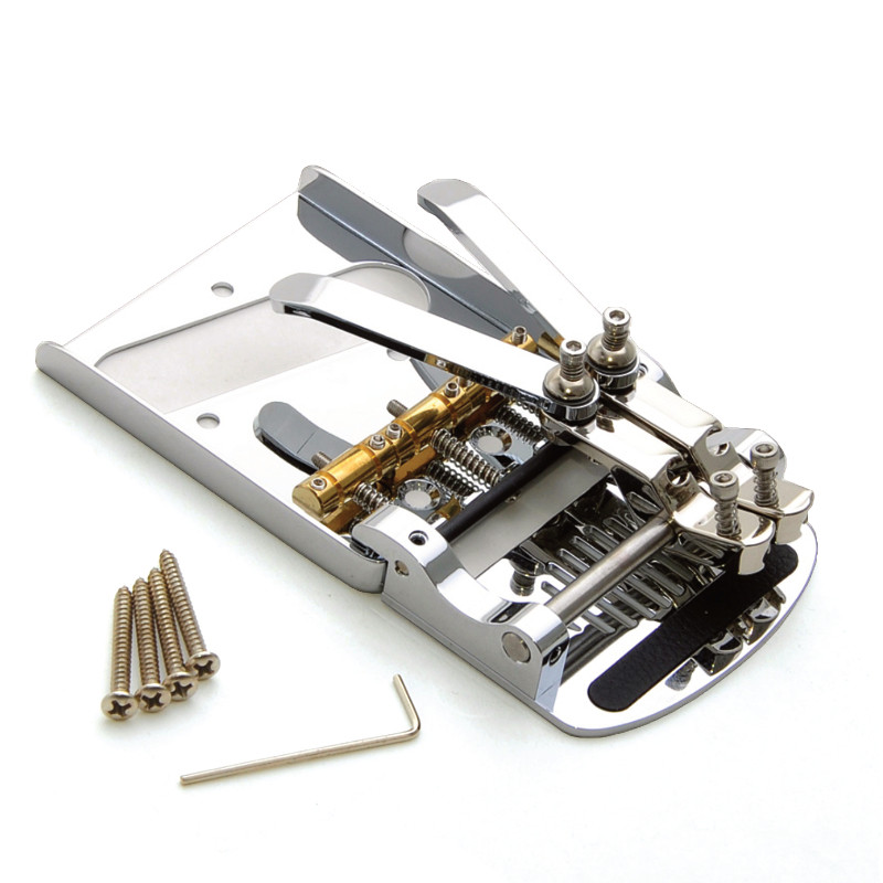 The göldo tremolo for offset guitars is not a copy of the Fender® system, but can replace it without milling, drilling and modifications. It offers all the advantages of the new göldo DG1 tremolo series: butter-smooth movement in "up & down" operation and an in all dimensions settable and elegantly shaped tremolo arm with safe, adjustable zero point....